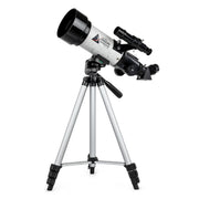 - Télescope réfracteur de 70 mm avec optiques en verre entièrement traitées offrant des vues exceptionnelles de tous les meilleurs objets célestes : la Lune et les planètes, la galaxie d'Andromède, la nébuleuse d'Orion, et bien plus encore.